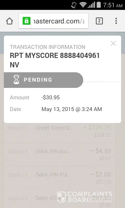 I was working with Deloitte Carson City NV US. After joining the Deloitte, Senior employee told me to do credit check by paying $40 myself. I did the credit check. Now after more than one year RPT MYSCORE [protected] NV charged $35 through my Bank of America credit card- details below: RPT MYSCORE [protected] NV Transaction Date: 06/19/2014 Reference...