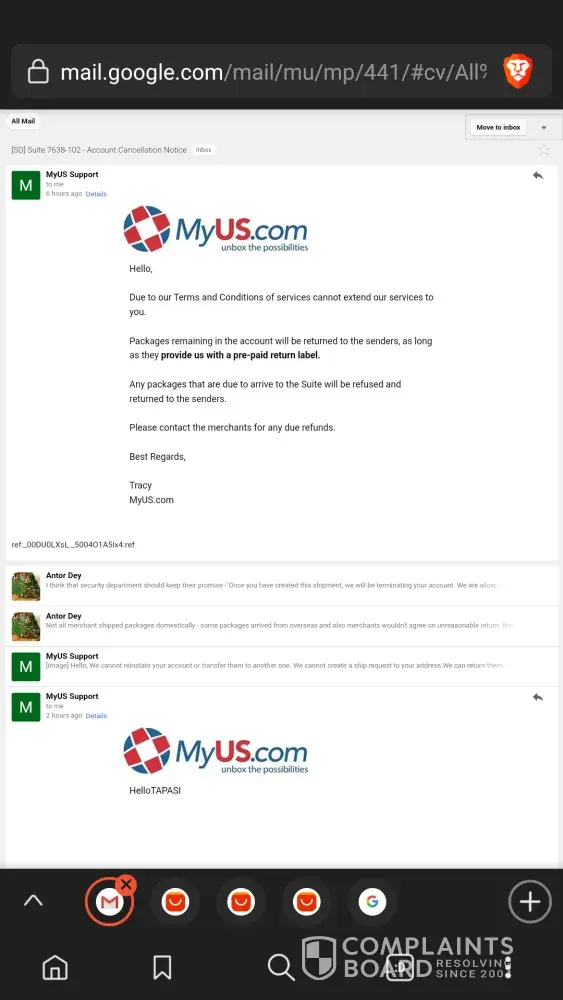 ([SD] Suite 7658-604 - Account Cancellation Notice: Due to information provided, your MyUS account has been closed and we cannot extend our services to you.