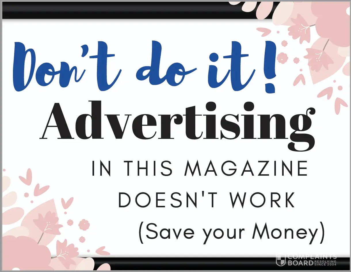 Third Red Flag: The contract you will sign is very binding and hard to get out of. The magazine will want at least a 3 year commitment. You will have to pay at least $500 which is a fee to cover you Ad management and Design Fee. You will not be able to terminate your sponsorship until you have at least been in contract for 12 months. At that point you will then have to pay 50 percent of the remaining contract even after requesting to terminate the agreement and pulling your ad. This is a tactic for them to generate revenue and take advantage of small businesses financially.