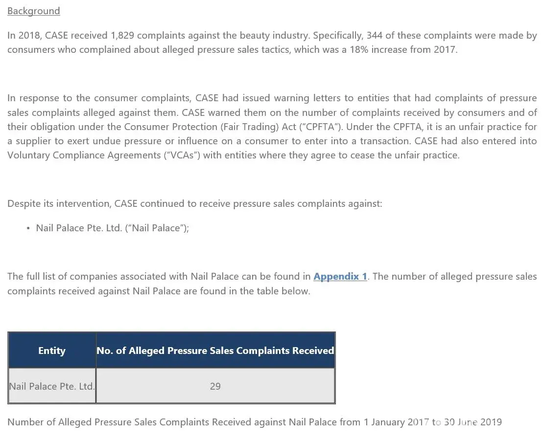 I even asked why the place was empty as I did not see any other customers. I left feeling cheated and cursed myself for wasting my money. I came back home and goggled and was shocked to see only bad reviews and CASE warning and even CNA article on errant beauty salons and Nail Palace is even one of them. I went to Facebook And bad reviews about them as well. I realised that I was cheated and customers who shared were in similar plight as me - even exact incidents that happen to them. Why isn't this place closed due to many complaints and bad reviews?