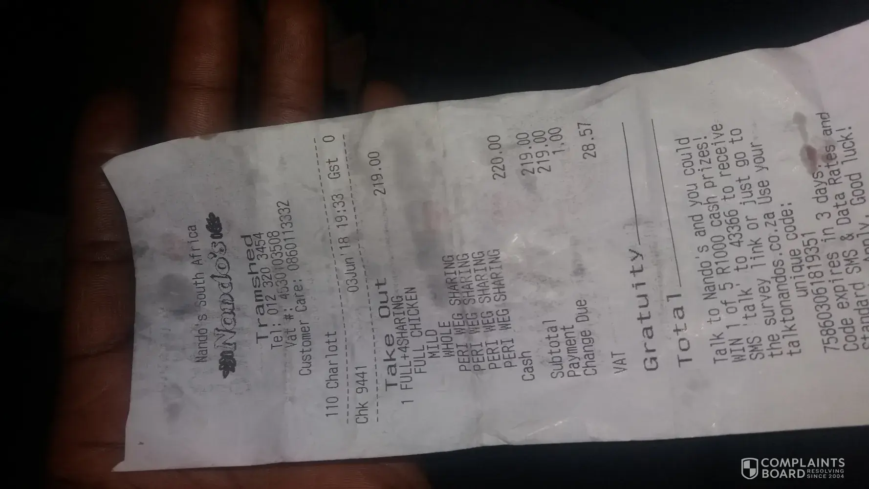 Nando's Chickenland product and service complaint