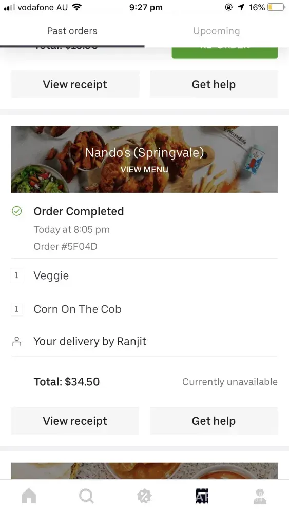 from nandos springvale i ordered those things from uber eats but instead i got chicken and i am vegetarian and from one hour i am calling them they are not replying not picking up my phone and i came from work and i am hungry so now i want refund because this is the worst customer service i have ever seen till now so please give me my money back
