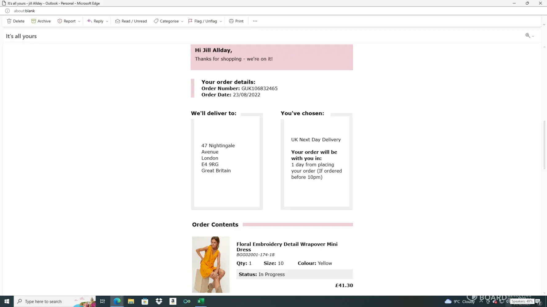Desired outcome: Please refund £41.30 to my account, many thanks
