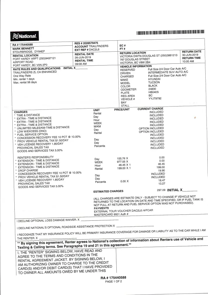 I have already submitted this complaint once with no response. We collected a hire car from Port Hardy Airport and there was no one at the desk when we arrived. We had to call and after the second call some one arrived who said that they were not the regular person and that Debbie had a water leak so she was helping out. This person then told us that our...