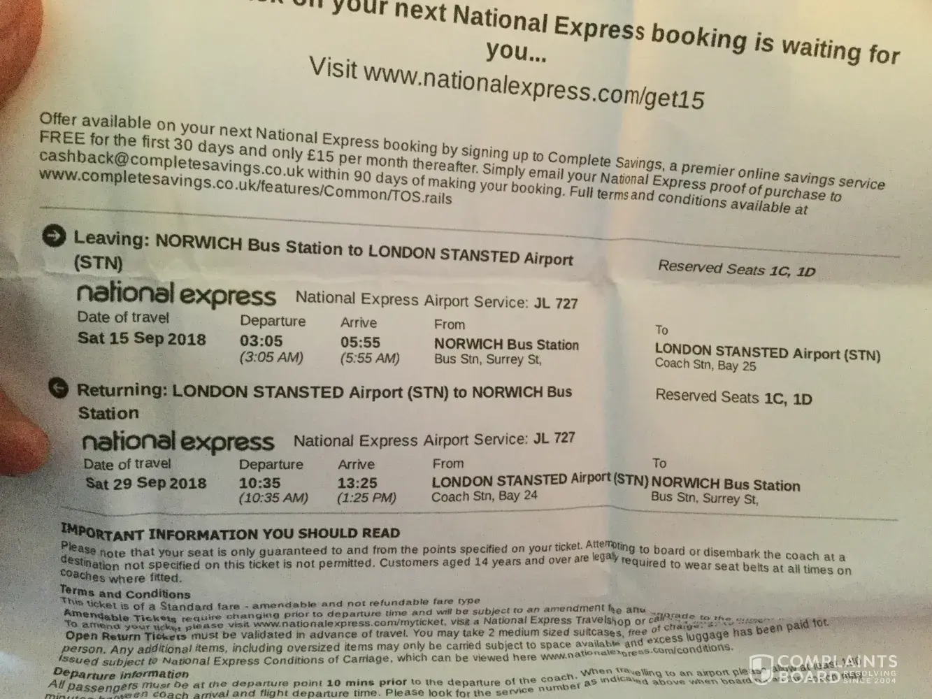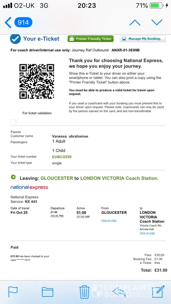 National Express need to look at the information given to customers at the time of booking.