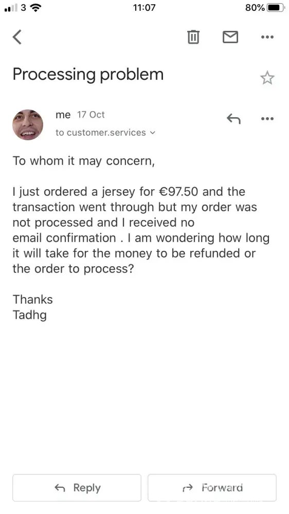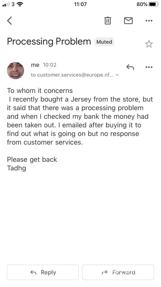 I recently purchased an OBJ jersey for 97.50 and the order was not processed but yet the NFL still took the money from my account. I have sent two emails to their customer services in the last week with no response from their ‘24 hour response' time. I have no idea where my money has gone and no feedback from the customer services oh the subject.