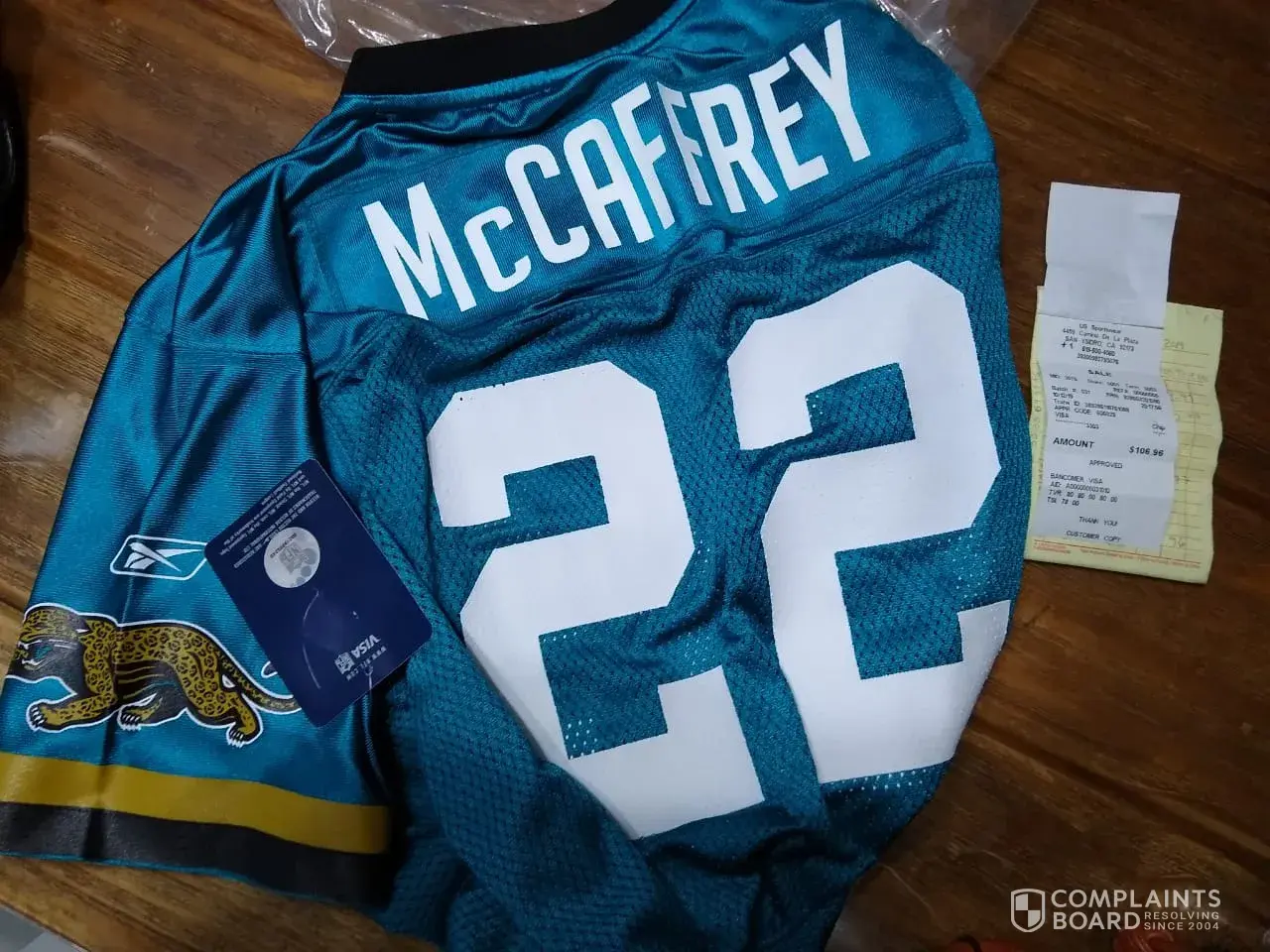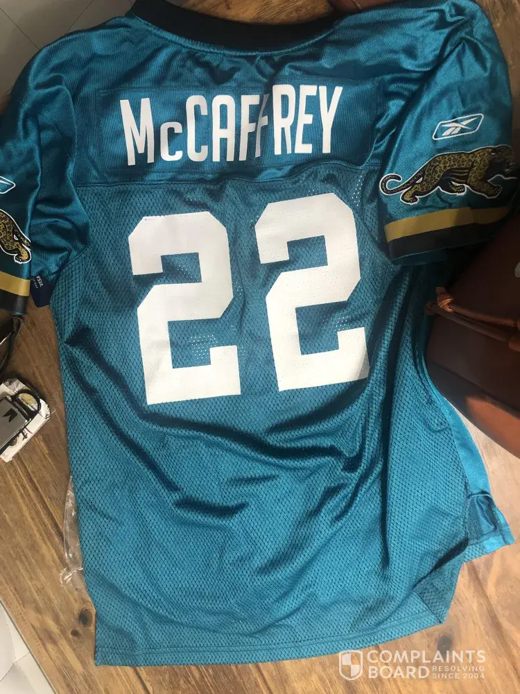 My order was the blue Jersey of Christian McCaffrey (no. 22 of North Carolina Panthers) And I received the Blue Jersey of Chrstian McCaffrey 22 of JACKSONVILLE JAGUARS. Also they told me they were original Jerseys so I called and they told me on the phone they sell replicas, which is a euphemism for "forgery".