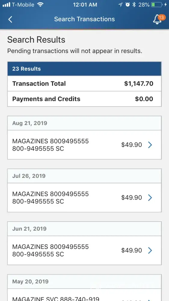 I've been trick way back September 20, 2017 by a agent through the phone, as I was cancelling it they told me that I can not and I have to finish the subscription I was being charge for $49.90 every month since then, when they called me I said no for renewing my subscription but yet they've been renewing my subscription! I never read any of the magazines I even move to a different state already too, and asked them to send those magazines to someone else or donate them as I never used them and it was just piling up on my parents house back home, I've called them several times and told them to cancel my subscription but they won't they always say they'll put me on a non renewal subscription list I've already paid $1, 147.70 total until today 9/20/2019, I am a single mom and trying to survive and I can't continue with this payments anymore. Please help me as I already been begging for them to take me off on this subscription, their acct name appears as MAGAZINE SVC OR NATIONAL MAGAZINE SERVIC ON MY CARD I'll attached pictures of their charges. I'm getting renewal of subscription everytime without my permision