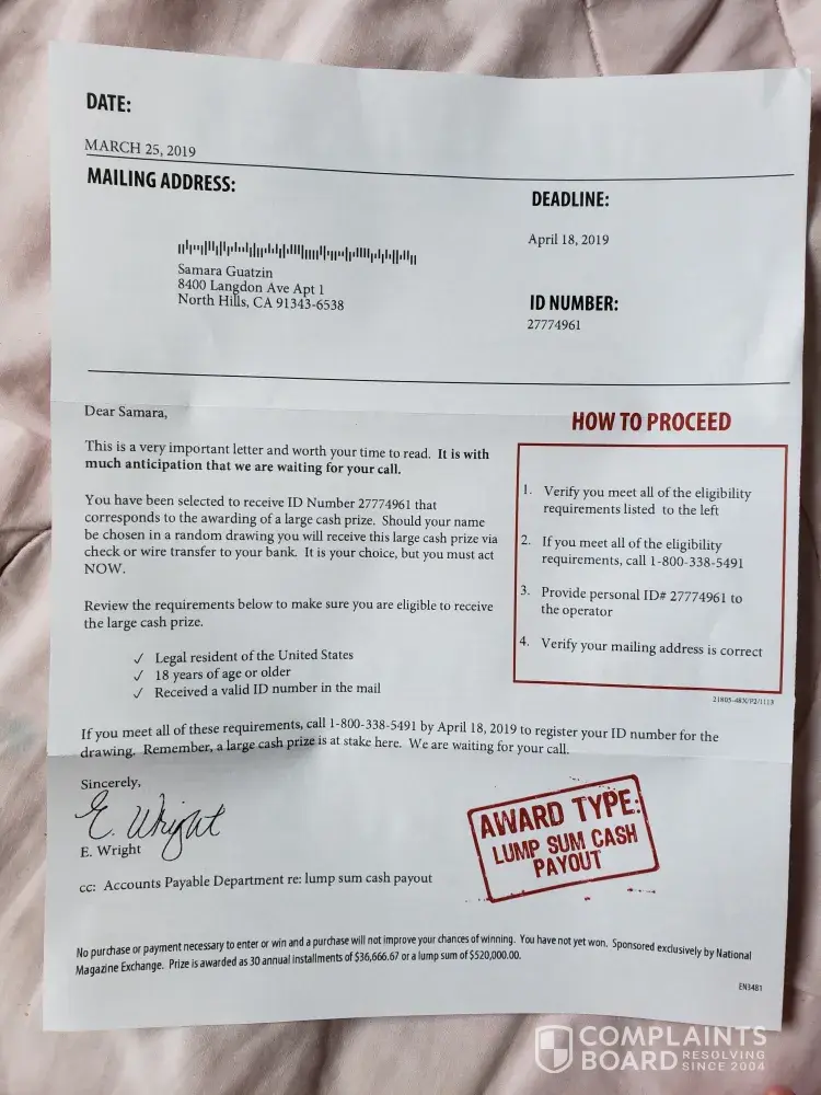 National Magazine Exchange sweepstakes