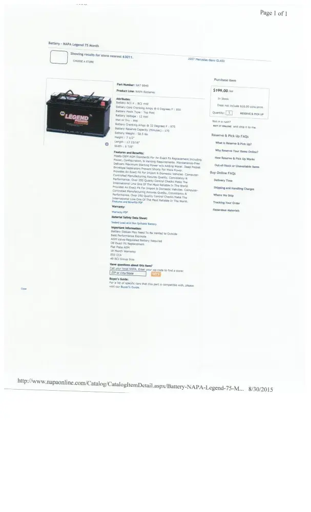 On Saturday, August 29, 2015, I placed a call to National Tire & Battery (NTB) and spoke with Chad located at 15655 Manchester Road, Ballwin, Missouri [protected], store phone number [protected] to see if they carried a battery for a 2007 GL450 Mercedes. I was informed by Chad that “Yes†they carried a 5 year battery around $250.00. So I took vehicle in to have battery installed. After the completion, I was given a receipt with no warranty information, part #, or name, type, make or model of battery. When I inquired about this info, I was told I did not need it, because it was all documented in the computer system.