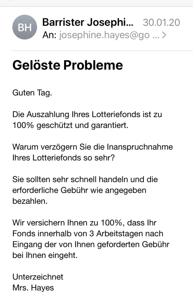 Ich bekomme nun seit einem Jahr folgende Mails. (Fotos)