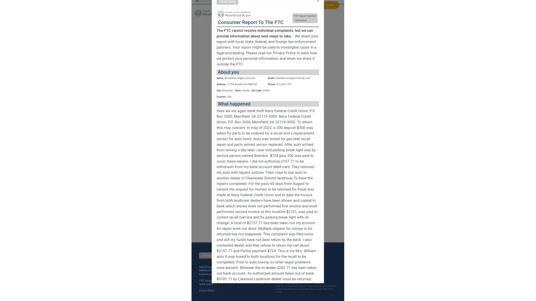 I will never use Western Union services again, and I will leave my Navy Federal account open only for the duration of the investigation to preserve evidence.