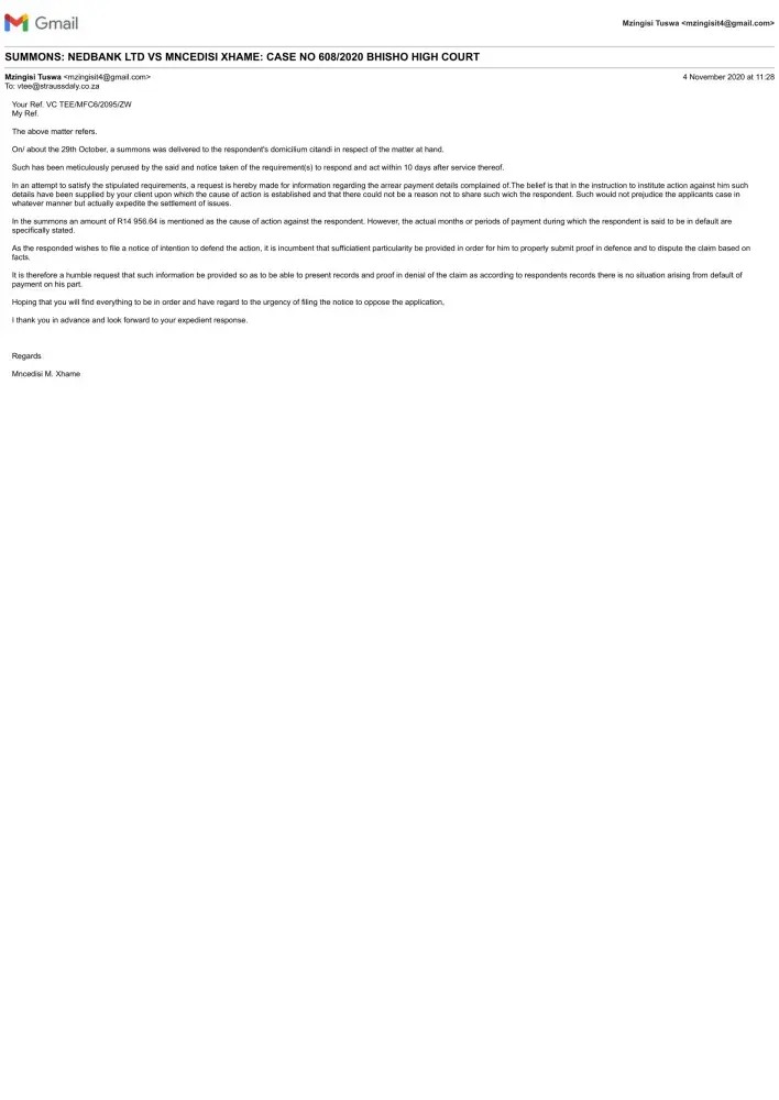 Its not fair what they did. All the other banks helped their people, what is wrong with Nedbank? It was not necessary to summons me and not even with a phone call or email to warn me. I paid as I promised. So I don't know what the problem is.
