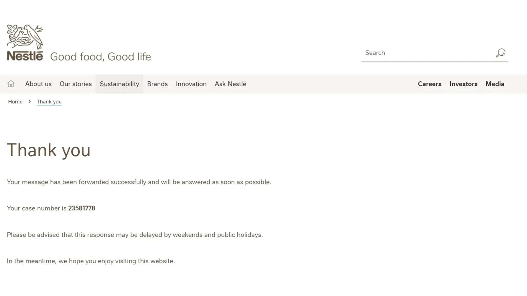 • While Nestle has a high level of trust, our investigation has revealed that the company's complaint resolution process is inadequate and ineffective. As a result, only 15% of 115 complaints are resolved. The support team may have poor customer service skills, lack of training, or not be well-equipped to handle customer complaints.