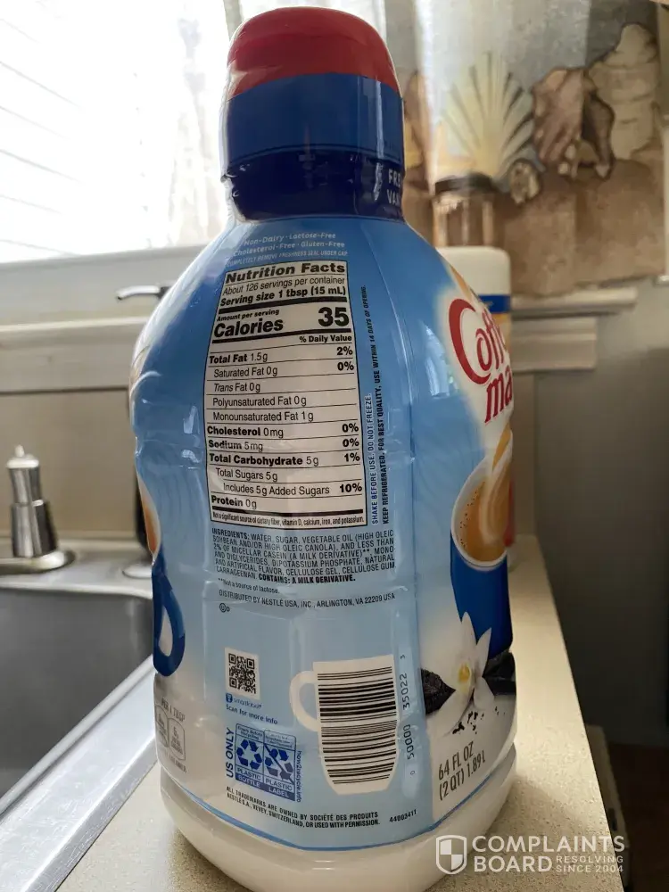 I have been using Coffee Mate French Vanilla Coffee Creamer for years! I recently have had a problem with it curdling and separating in my cup. These 64 oz bottles have an expiration date on them of 05 July 2021, the current date is 22 January 2021. The batch code on the lid is [protected] / T1613