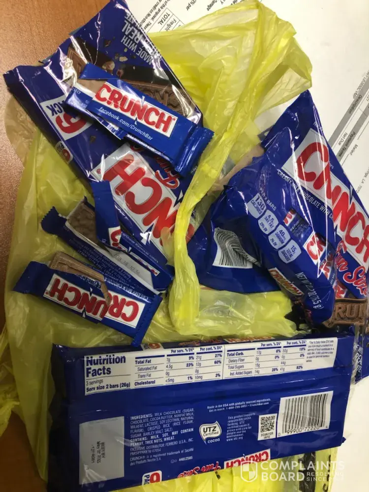 I bought three packs of nestle crunch from a local dollar store by my house, when opened first pack it was white not brown, opened second pack same problem I looked at the date on package had May of 2022, and its only [protected]. None were melted you could see the log printed 100% but all the chocolate in all three packages were white in color. I went thru my trash the next day could not find my receipt, which they would not return without it. I stopped by a different dollar store the next day for milk and decided to check the date on the ones they had on shelf had same dates but was scared to buy more.