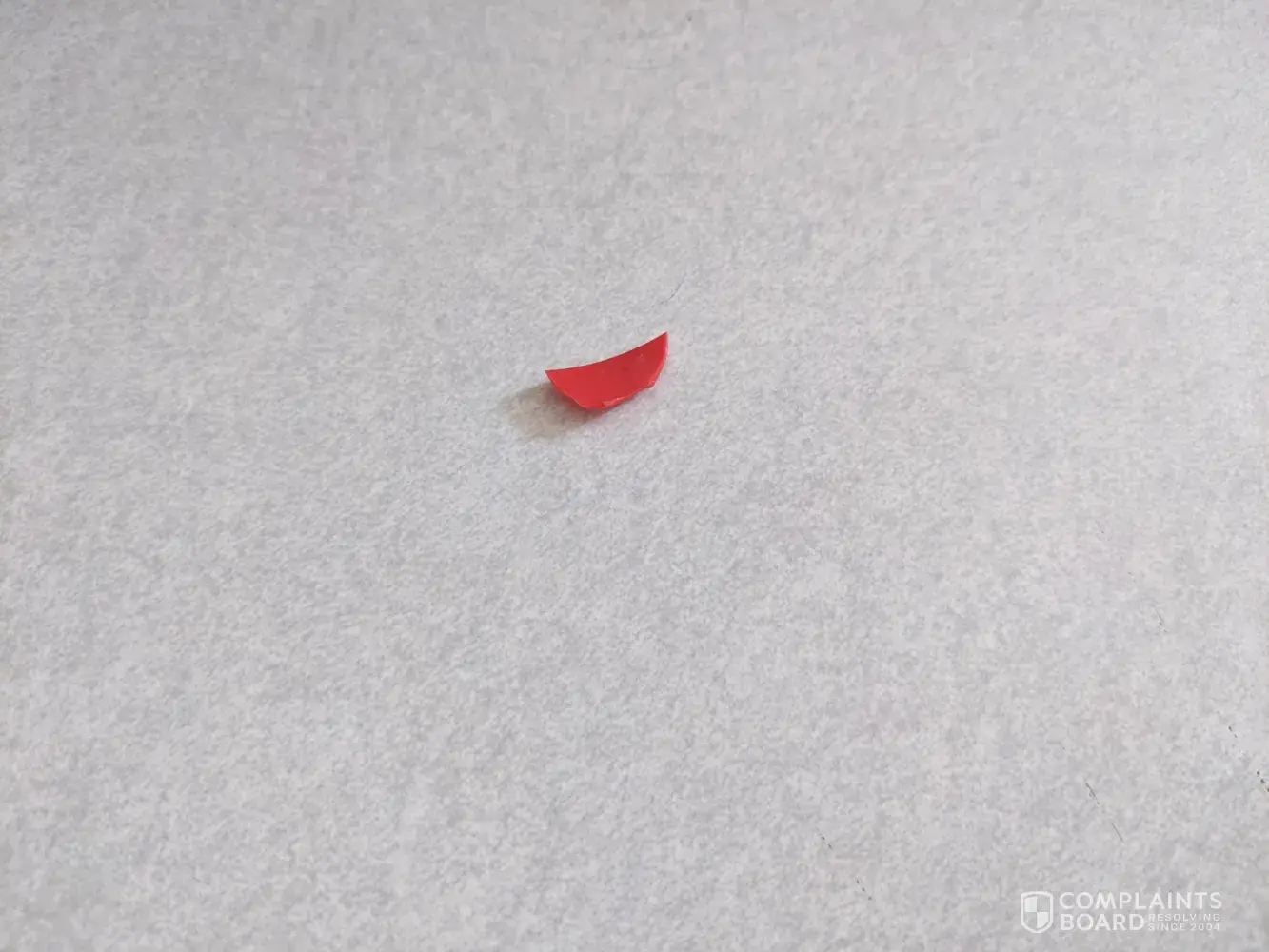 Opened a new bottle of creamer. I used for two mugs of coffee . Third day I pour into my mug of coffee I I find a piece of red plastic floating in my mug. I took it out with my spoon. I did not have any other objects near, just the mug of coffee.