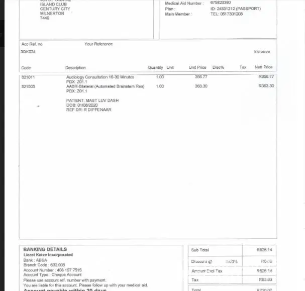 Now, my error or something discovery paid the amount to my account and did not make the payment to Lizel Kotze, and Lizel Kotze office never reached out to be regarding the outstanding amount, but they sent it for collection to Lexmed.
