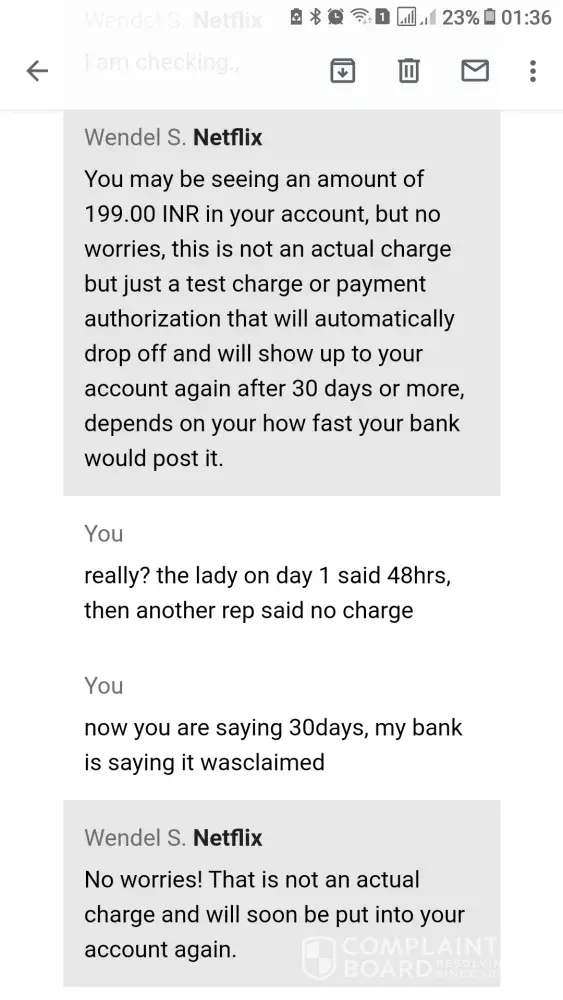 I called and complained many times. It's been more than 1 month I have been asking for my money back. They keep sending back to my bank. My bank had clearly stated that netflix has been paid and they don't have the money.