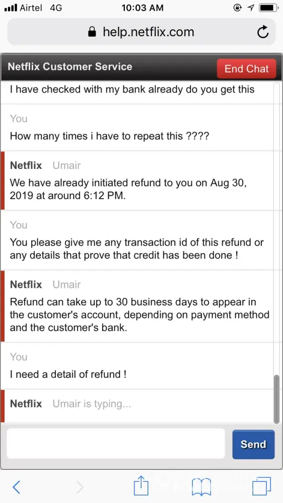 netflix credit refund and rude staff behaviour