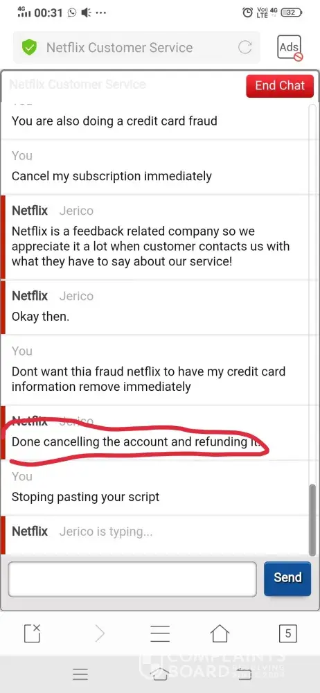 netflix subscription cancelled and amount not yet reversed.