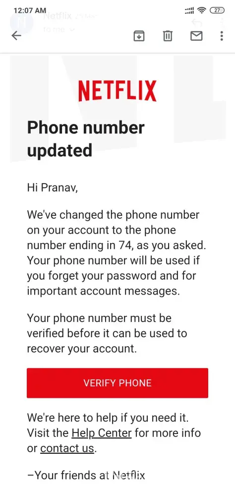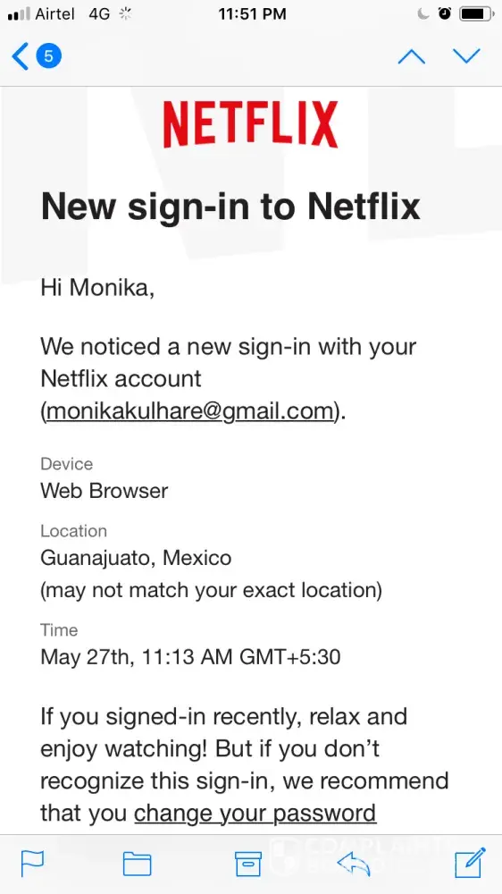 I have received two emails from Netflix today that my password has been changed and after that registered email ID has also been changed. I have not done both of the above transactions and now I am unable to login to my account. Kindly recover my password or deactivate the auto payment for the mentioned account.