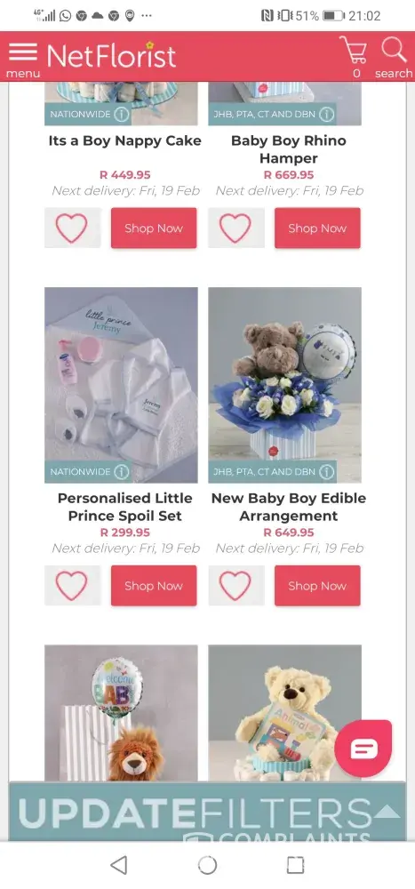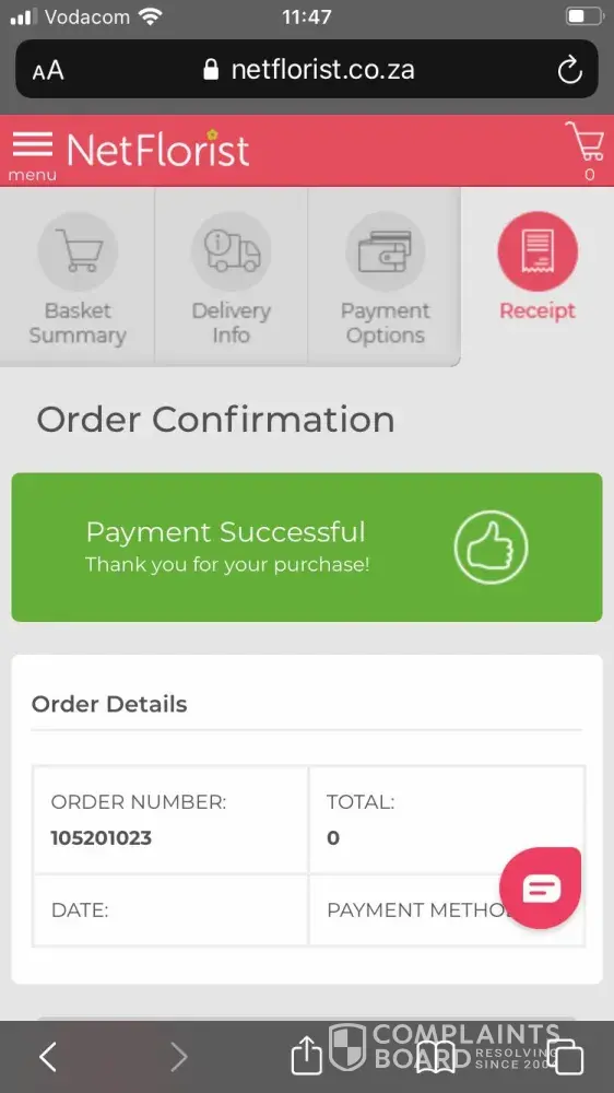 My daughter recently sent a gift for my wife via Net Florist from Johannesburg to Amanzimtoti in Kwazulu Natal, which was due to be delivered on 30th May 2021 in time for my wife's birthday on 1st May 2021, which never happened !