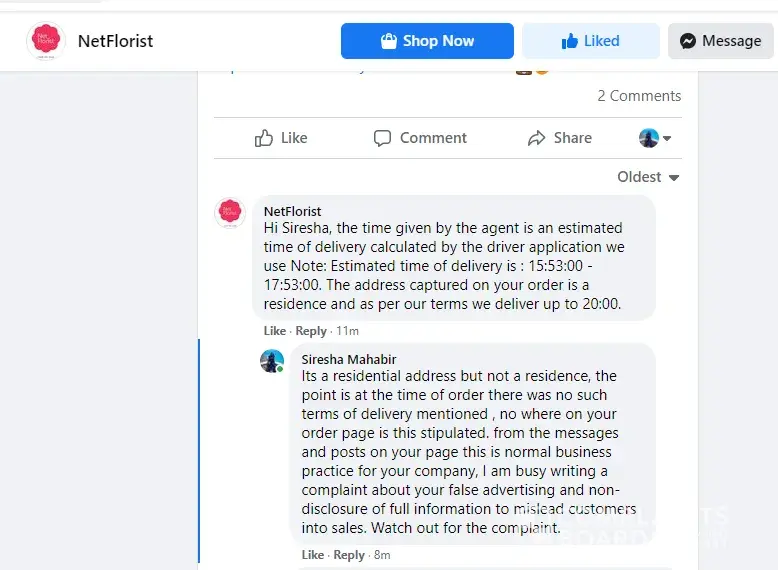 NetFlorist Netflorist Dishonours Delivery