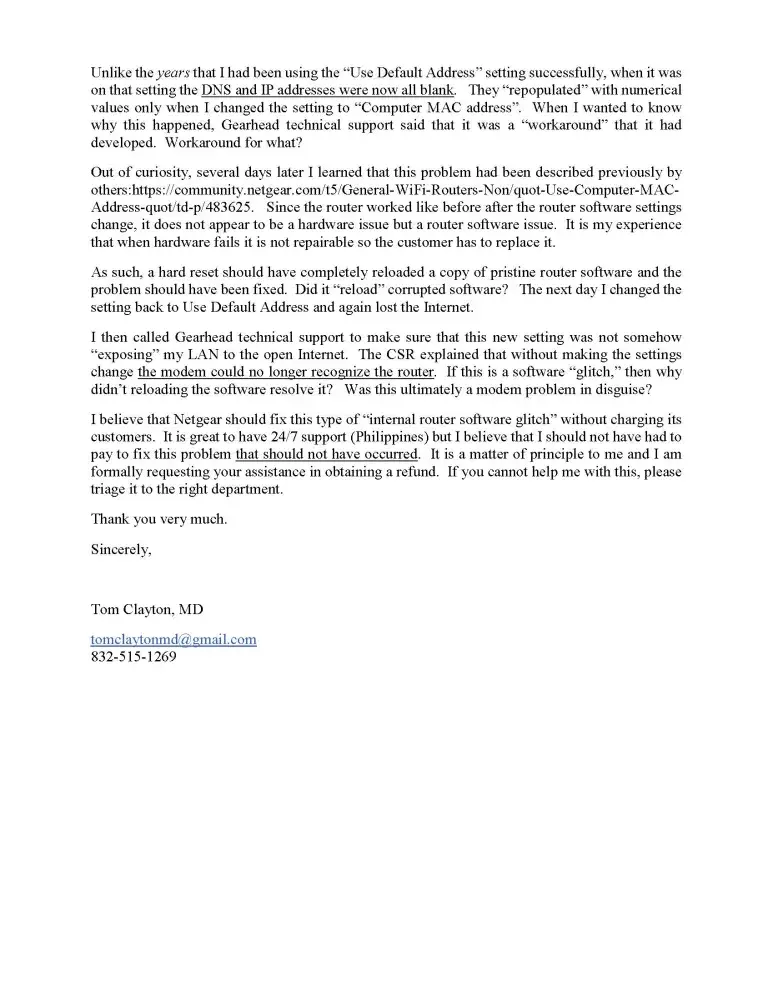 A few weeks after I purchased a Netgear CM500 modem it stopped working but when I contacted my ISP (Comcast Xfinity) they verified that it was working properly (still under warranty). They could "see" the modem and even reset it remotely. But because they could not fix it, I was compelled to call Gearhead Netgear support (Customer #38, 430, 700) and pay $53.61 (tax included) to get the solution. It is my contention that I should not have had to pay to fix this type of problem.
