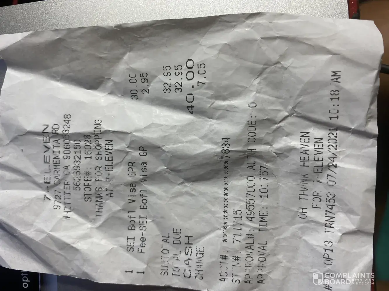 I purchased one of your credit cards at a 711 near my residence for the amount of $32. 95 cents. When I tried to activate it, I was referred to one of your representatives. He asked me for my social security number. I REFUSE TO GIVE MY SOCIAL SECURITY TO ANY 3rd party. He stated, that was the only way or I could ask for a refund. I gave him my address and he told be I would receive a check for the amount. I've never received the money from your company and I can't get thru to the [protected] number. I get a message that my number on the card is invalid. This is not fair to me. I want my refund back. That's all I'm asking for! I've written to the President of your company and I received an email from ARMI, one of your representatives. He stated I should call the customer service number. When asked to input my number, I get a message stating that my number is invalid. I have no other choice, but to file a complaint with you and if I have to with the Better Business Bureau. I would appreciate a refund check for the amount in question. $32.95.