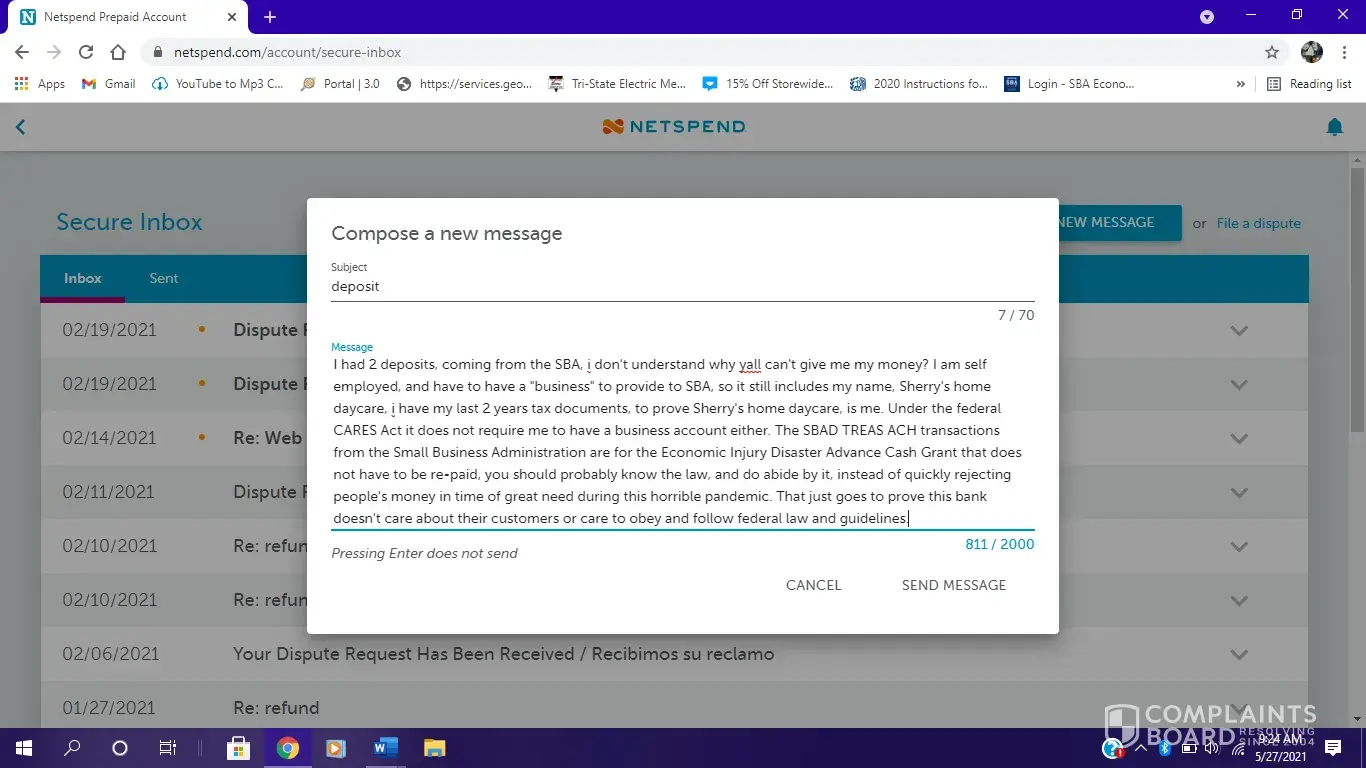 Hello, I recently was approved for the SBA COVID advances/grants to help my little home daycare get rebuilt again. I have been doing this as my employment over 10 years, have always filed my taxes, which is the reason I have netspend in the first place, my tax filer, liberty tax, gives me the netspend cards to receive my taxes on it, anyways, netspend...