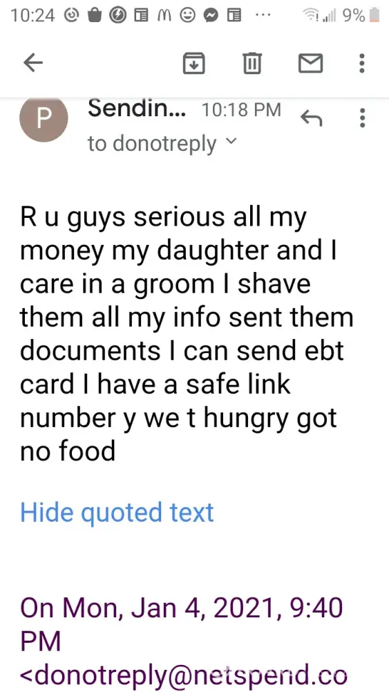 My card has been locked since May with no understandable reason. I have been told a few different reasons but not one of them explain how I'm supposed to eat, pay bills...you know the real messed up part of this is that I have ended up basically homeless and hungry...never did I think that this would happen to me. I m hurt, disappointed, and I've lost faith in humanity because of this. I have been denied access to monies that were rightfully mine, that I worked for to be able to receive them and here they go stripping me of the mere ability to live..to exist...to survive. Never again will I deal with Netspend and I definitely will not recommend them either. Right now I feel abandoned, hungry, violated, and used. I wouldn't be surprised if I didn't end up with a bad case of PTSD.