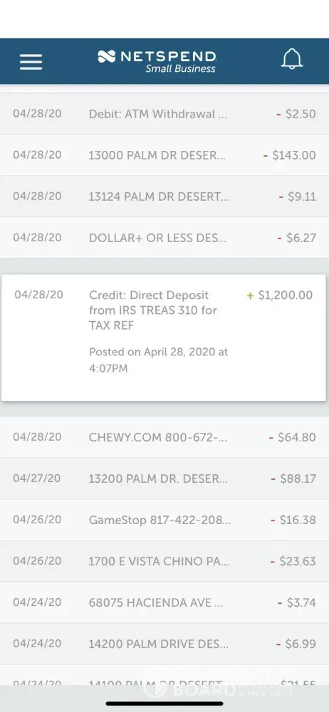 I have a business card with Netspend and on April 28th 2020 I was credited $1200 for a deposit from IRS for a stimulus check, it went thru with no issues.