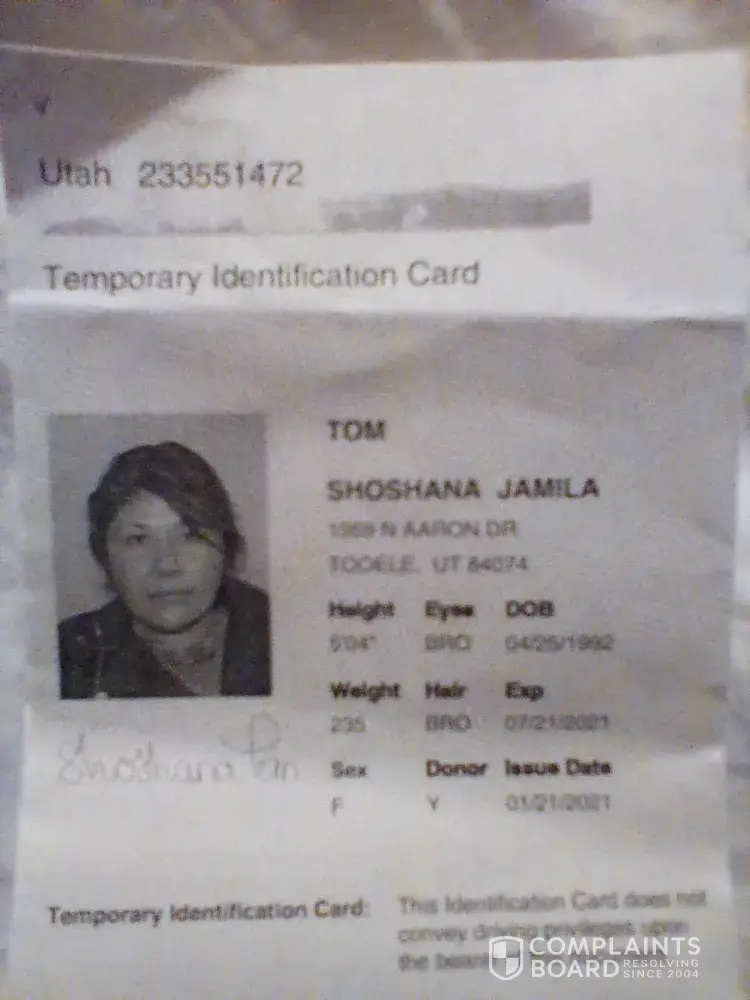 Desired outcome: I had just bought a new I.D. I temporarily moved to Utah and this is the only address I have..Would you accept my paper copy Utah State I.D. for now when I get my hardcover I.D card I will send a copy to net spend.