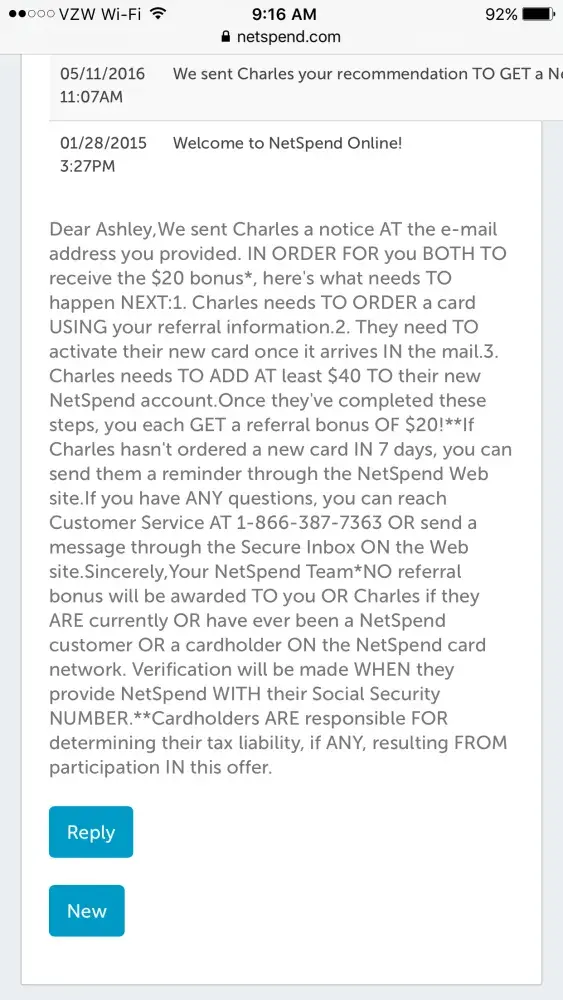 I've had my netspend account for well over 2 years now. My direct deposit from work goes into this account as well as my tax refund deposit. I recently decided to try their refer a friend program and I referred my fiance. He lost his job back in june so every little bit counts in our household. We followed all of the directions that were required in the process but we never received the referral fee. That wasn't even my main problem though. My main problem is the extreme lack of customer service I received. They told lie after lie even when I gave them the proof of everything! Whenever I asked to speak with a manager or supervisor they would say their manager/supervisor wasn't available or say "ok" and put me on hold forever! Then there were those who would lie and say "the money will be in your account in an hour or less" which never happened. There was even a guy who said "the reason why the referral fee wasn't given is because he had (Keyword) an account with us that was opened in 2012" sayint the account was not inactive, lie! He even went on to say a fake email account that my fiance never had, and it sounded ridiculous. I read policies whenever I sign up for anything and even if he had a netspend account before he had not had one within the past 180 days per netspend refer a friend policy, "no rewards credited to either party if referred individual had a netspend card that was used for a value load, purchase, cash withdrawal, or incurred a balance inquiry fee at any time during the 180 calendar days before the day the $40.00 load requirement is fully met. " however, he had never had a netspend account prior to this and if he did, why would it allow him to go through all the steps in the referral process? That's something that would be a flaw on netspend's end, not mine nor his. No one wanted to credit our accounts, they told us that an escalation takes up to 2 busniess days for a response. Some conversations, when they got tired of me or him, they would ask us for the referral code and say "we reset your referral code, you will get the money in 2 business days" another lie! We were told so many different things that it blew my mind! We would talk to one customer service rep and tell them how we were unhappy with the previous rep and they would turn around and do the exact same thing! For a customer who's been with the company for over 2 years, where's the loyalty? Where's the respect? And you expect me to refer individuals to your business when I can't even get respect as an existing customer? That to me is beyond disappointment.. I'm frustrated! I was at work calling netspend for about 4 hours straight, being put on hold, arguing, fussing with individuals that should have assisted me as best as they could! I was about to give up until I saw the metabank logo on the bottom of their website. I clicked it and called their customer service number. The woman told me to call netspend so I told her that no one was helping me and she asked me what was wrong. At this point I didn't want to fuss or argue, I was worn out and I explained everything to her. She reached out to a manager and told them what I told her. About a half hour later, I got an unknown phone call (I'm guessing because they don't want anyone to contact them) and the issue was finally resolved. I should not have to go through that. I am very upset, my fiance was even more upset for me. This took 4 hours out of my office time at work to try to get resolved, this means I have to work late... Thanks a lot netspend.. And believe me, I will share this until you put forth some type of new customer service regulations!