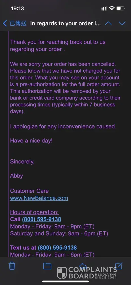 38 New Balance Athletics Complaints