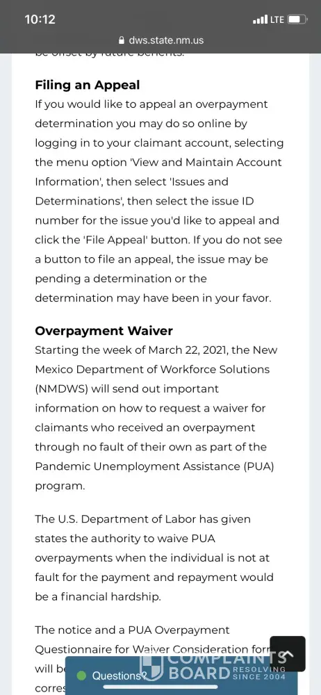 Read full complaintNew Mexico Department of Workforce Solutions complaints: history and resolution overview