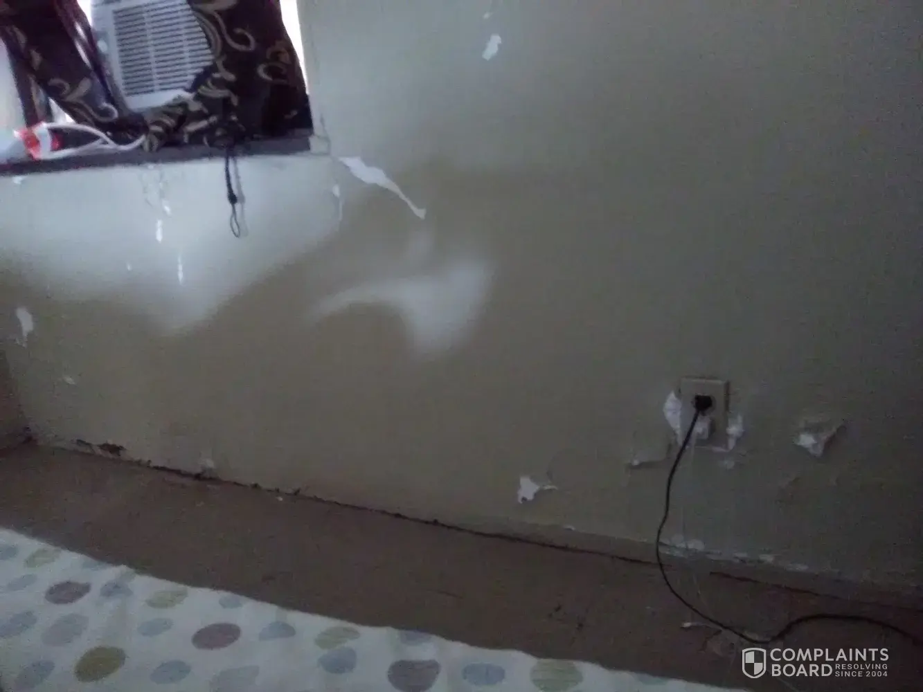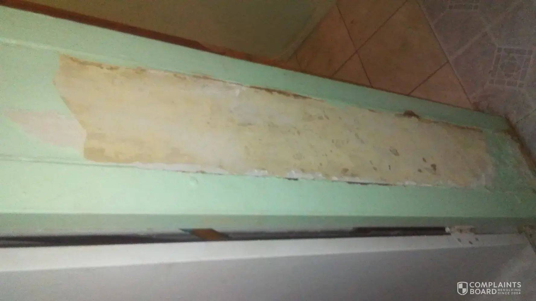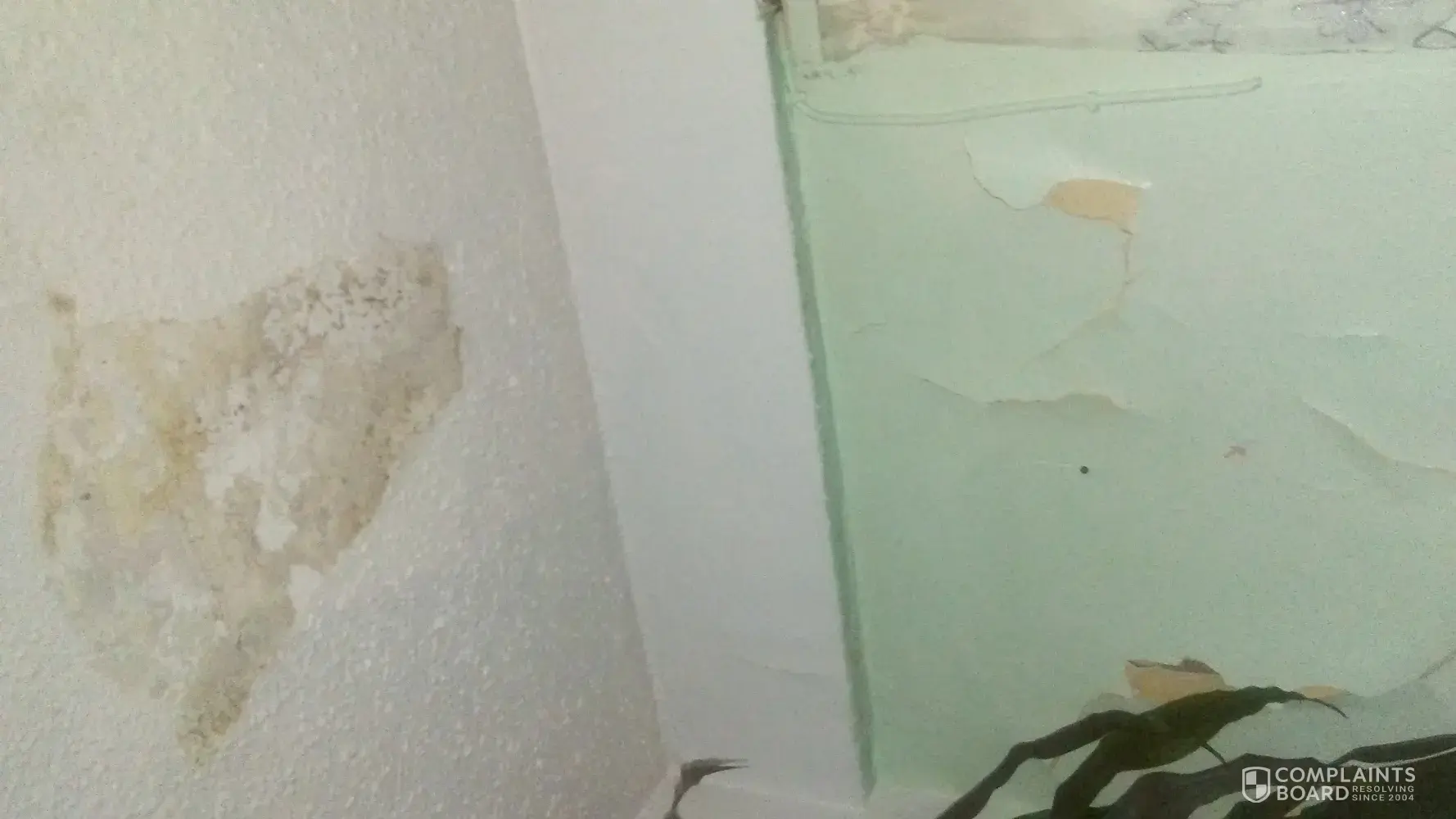 You can even see the waters drip stain coming in from outside and paint peeling, bubbling caking white substants forming on wall. Why do I have to live like this, nobody should while paying their rent in full all the time. SMDH