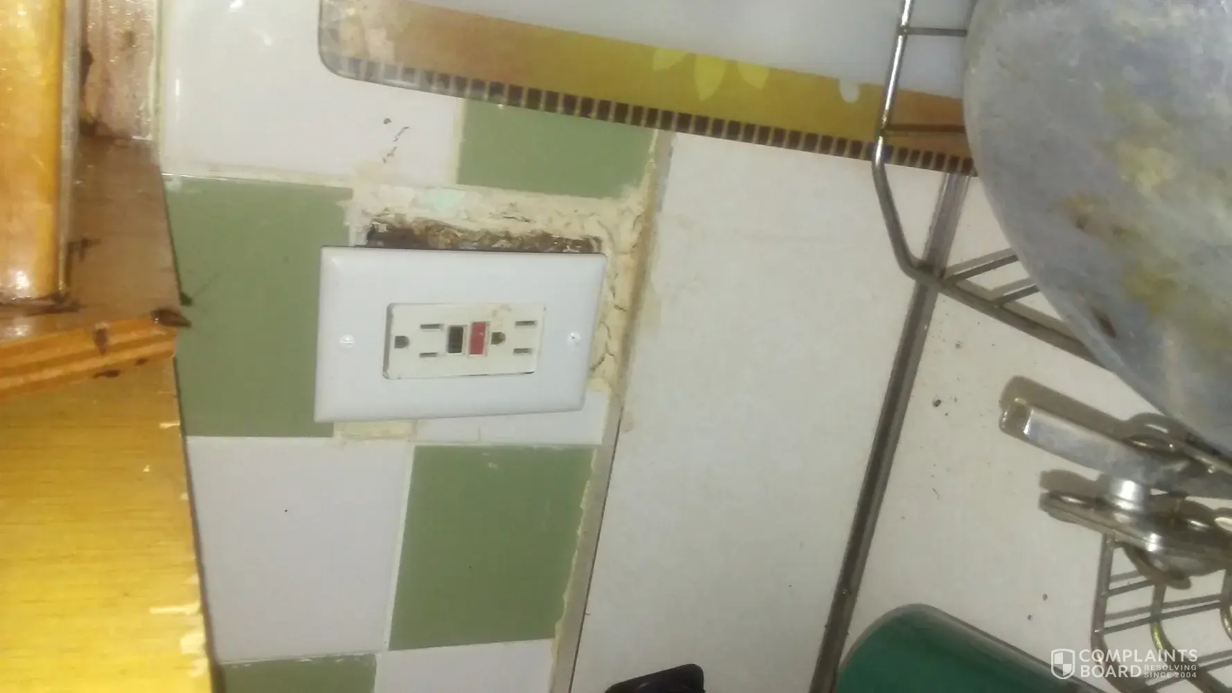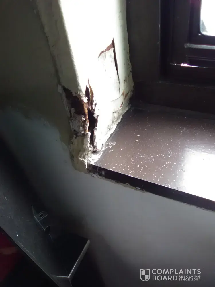 When it's rain the water that collects on roof comes into my bedroom through the walls and under the tiles. Floor tiles are cracked and has holes. Window pain has a hole, where small creatures (bugs) seep out from outside. Paint peeling and bubbling from access water build up. This has been going on for 3 years and main office knows the situation.