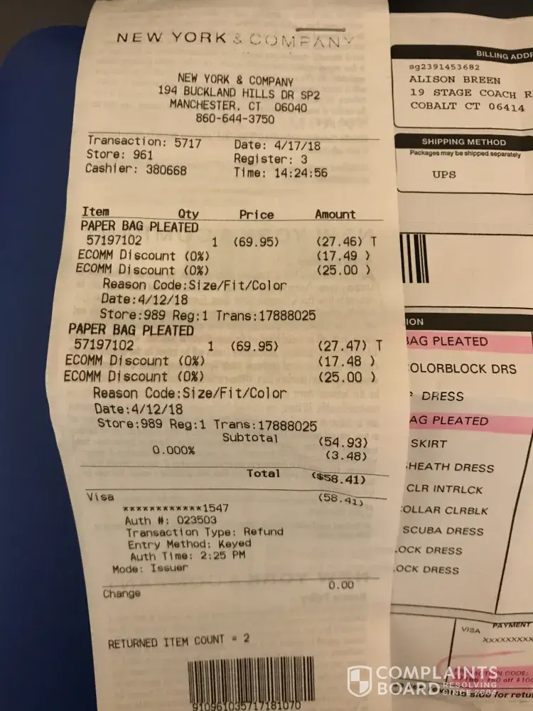 New York & Company Complaints Page 5 of 7