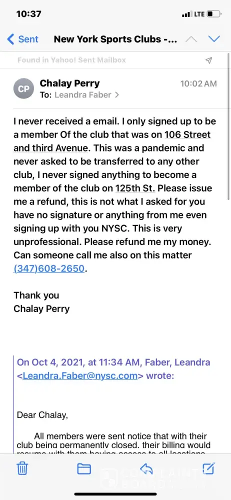 New York Sports Club [NYSC] complaints: history and resolution overview