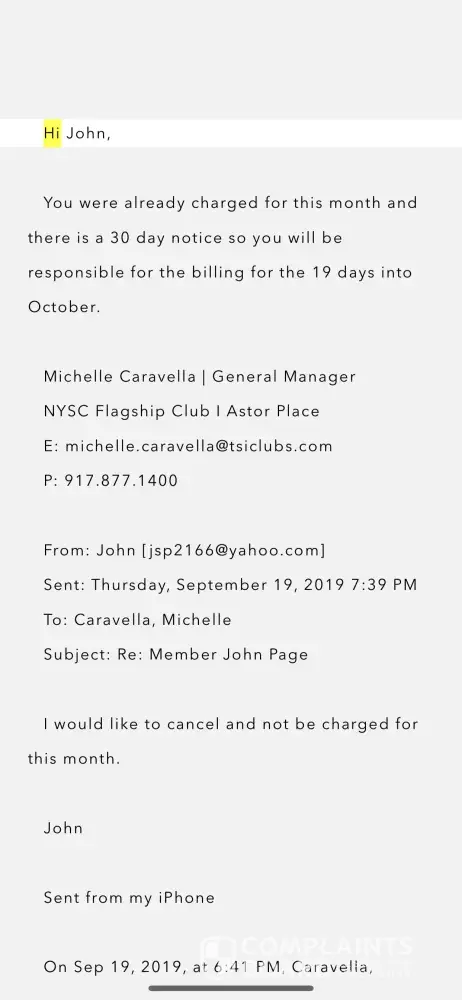 NYSC - please train your staff better. Process cancelations in a timely and effective matter. This is so unnecessary for your customers to be chasing you down for some stupid monthly fee months after they have gone to so much trouble to cancel in the first place.