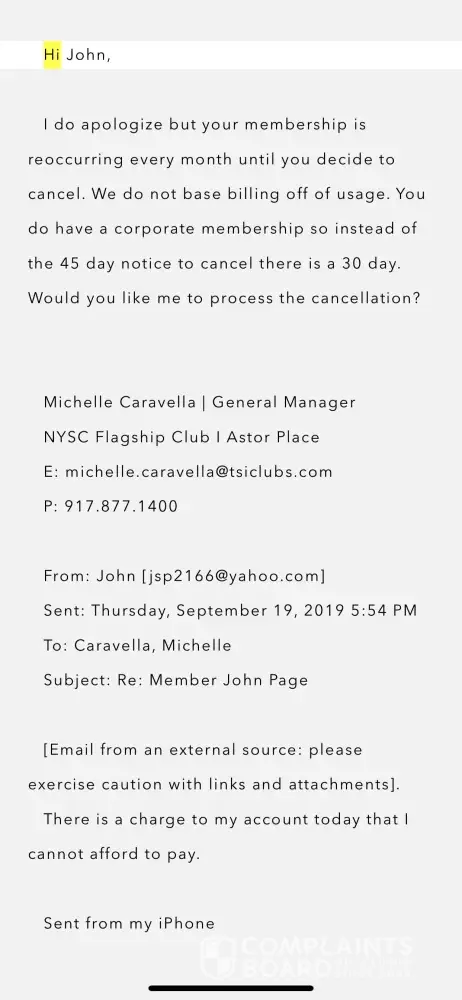 I have tried calling the number online for corporate and will continue to but this is by far the worst customer service I have ever received. Not from Mario - but from this company. These issues and the denial of refund after the agreement of all of these managers and workers at the club is absolutely absurd and I don't even want to be part of this gym when all of these issues continue to reoccur and be wrongfully ignored on NYSC's part.