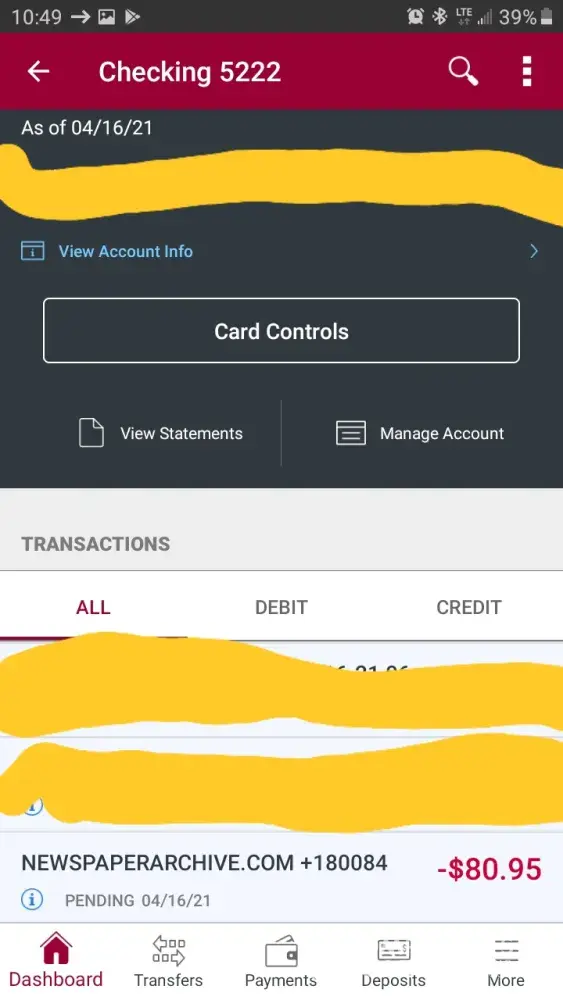 I sign up for their free 7 day trial on 4/07/2021, I cancelled the subscription on 4/14/2021, on 4/16/2021 NewspaperArchive.com charged my debit card in the amount of $80.95. I have emailed them twice about this error and yet to have recieved a reply back. I also tried to call a toll free number that was listed for them on the internet, but got some medical device company. I just simply want them to reverse that charge back to my card.