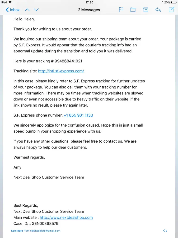 I ordered 3 of these towels on June 8th and never received them, I have sent them screenshots of the money taken out of my account from Next deal shop on June 11th and yet they say they cant find any record of my purchase and I still have no refund. I just continue to get emails saying "we have no record of your purchase, are you sure you ordered from our store?"