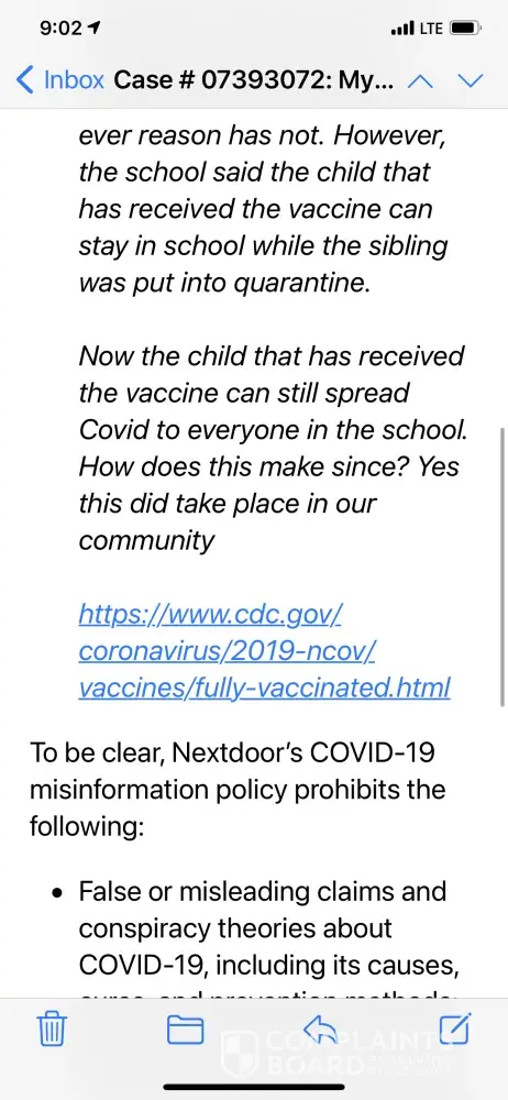 My post was about an event that took place at my kids school and dealt with Covid. I will include some pictures of what next door said as to why my post was removed. Even though I supplied evidence from the cdc.gov website. They responded with my post was misleading. All of the events I mentioned in my post actually took place and is still an on going event. My daughter was made to quarantine and get a covid test. While my step son is still in school because he has received the vaccine shot. Even though the cdc says he can still spread covid. As per the link I provide for all of nextdoor users and for nextdoor to review