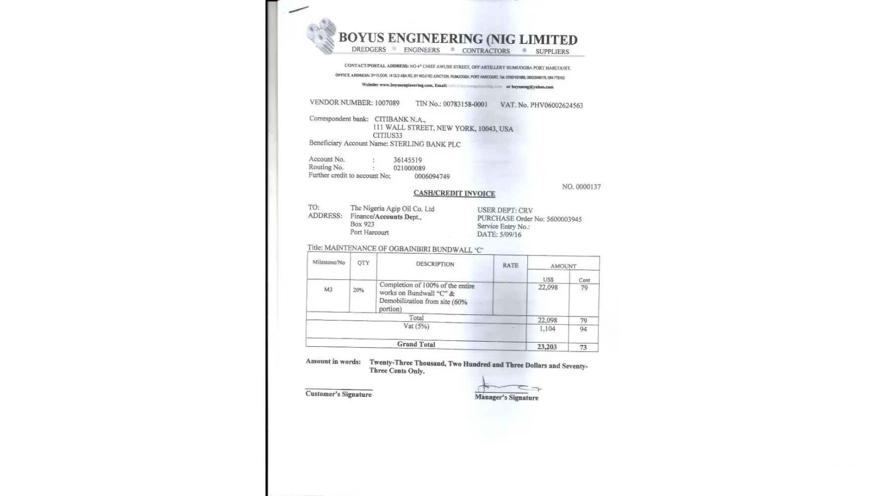 Nigerian Agip Oil Company [NAOC] Nonpayment of jobs completed