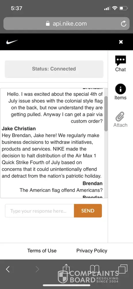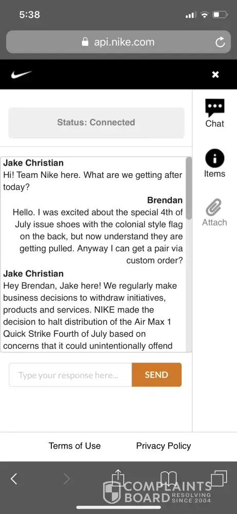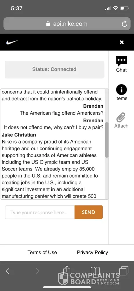 Below is a respectful conversation I had with a Nike employee. Unfortunately he could not even tell me who I could voice my displeasure to.