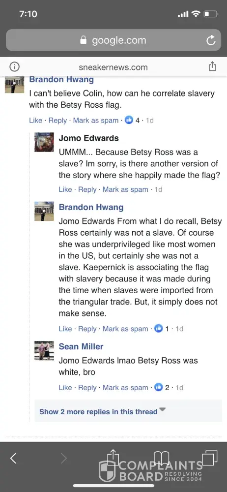 There is something fundamentally wrong with the NIKE owner and his company. How in the world would you remove the Betsy Ross flag over one unfounded complaint from an historically ignorant and politically stupid failing athlete such as Colin Kapernick? Kapernick is so [censored]ic he does not even know what the 13 stars represent. Did he graduate from college or just college football? If so, how many basket weaving courses did he take to pass his courses, if he graduated? Did he ever study American History? How many footballs hit him in the head? Why would you, Nike, stoop so low to an individual who is so utterly disrespectful and manipulated by a few political activists who hate America? You, NIKE, are yet another representation of absolute stupidity, cowardice, and greed. You want to maintain sales so you prostitute yourself in the name of monetary profit. So, you think that Kapernick will maintain your profits by your accepting his complaint to remove an Early American flag that represents our U.S. History; it represents a new Nation beginning with pioneers who settled this land with bear arms, hard work, love for God, religion, and freedom from oppression. Our 13 colonies represent our release and freedom from the bondage of a foreign country-- Great Britain. And you oppose this? You accept his complaint by acknowledging his and your hatred for America. He is full of absolute stupidity and amazing ignorance of U.S. History. Shame, shame, shame on you NIKE and Kapernick for your disgusting behavior toward our great Nation. Does Colin hate women? Does he hate Early American heroines such as Betsy Ross? Is he a MISOGYNIST? (How about shoving a little Left-wing radical ignorance in reverse with those questions? Logical? No.) The Main Stream Media and Left-wing radical political activists have allowed you to show your true colors--stupidity, ignorance, cowardice, and hatred! Recommendation: end your contract with the [censored]ic Kapernick. Find an intelligent athlete and sign him or her up! Is that too intelligent for your company owner?
