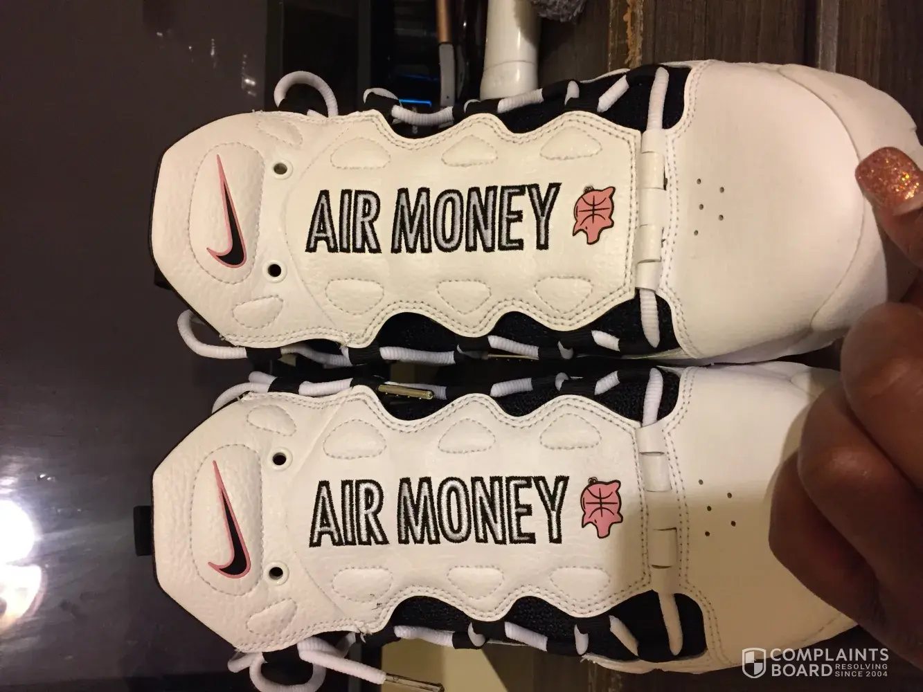I purchased these cute air monies and received them I did wear them but upon stepping outside into the light I realized that the changeable tongue with air money and the piggy bank on the left shoe is a different color from the right and no it's not suppose to be like that because I have two pair the other pair are both bright white while this pair has a bright white on the right and an off white on the left unexceptionable